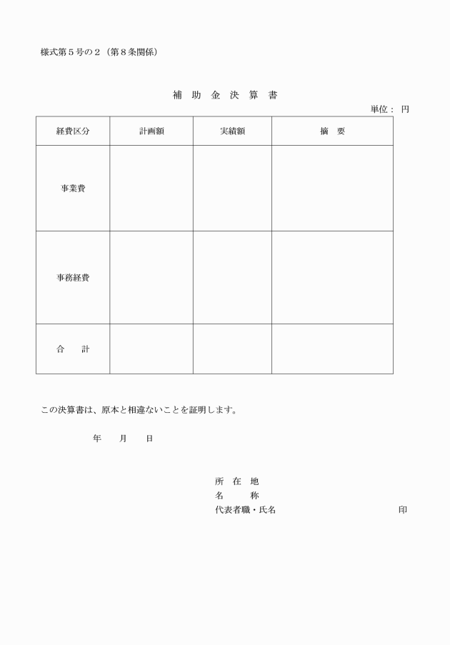 (2) 補助金決算書(様式第5号の2)